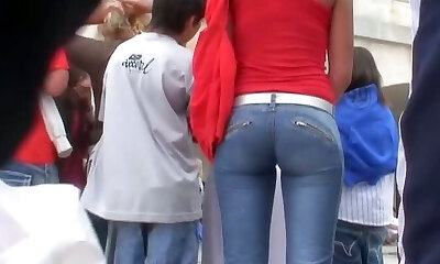 Candid street ash-blonde with sexy ass in tight jeans