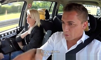 Fake Cab Blonde babe horny tourist masturbates