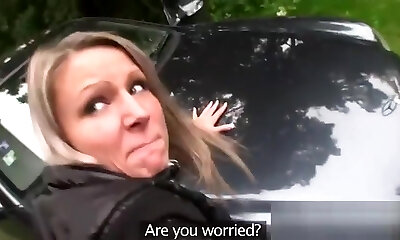 Interracial fuck in car for slender blonde with small tits
