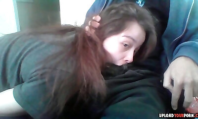 Latin teen gives deepthroat blowjob till throat-pie