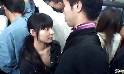 Naughty Teen AV Gal On The Bus Wanks Her Boyfriend Until He Blows A Load