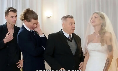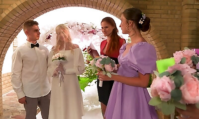 Slutty blonde MILF bride is fucking with her fresh sonny during her own wedding