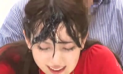 Facialized bukkake babe wettened in cum