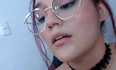 Teenager in doofy glasses passionately pulverized in front of her girlfriend with her stepmother.