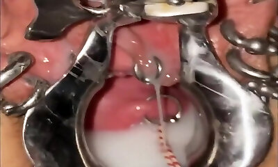 Wife's spread pussy close up pissing