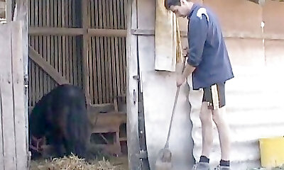 une mamie chaude suce une bite de taureau noir et se fait défoncer et son mari regarde