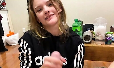 la jolie ado ash-blonde fait une fellation torride et une pipe