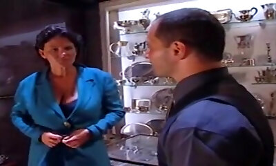 Dashing Cougar with glasses seduced a male and got a lot of delicious sperm on her holes.