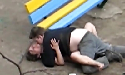 Mature pummeled in public