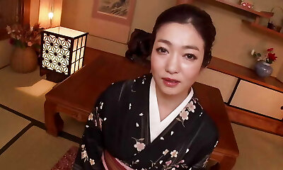 Mature Woman in Black Yukata Has Sex with Dude at Molten Spring Hotel