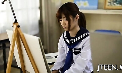 Cute japanese schoolgirl gets screwed in plenty of positions
