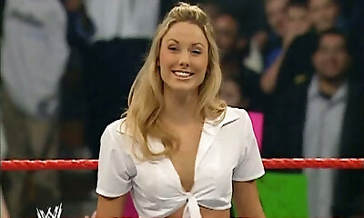 Wrestling babe Stacy Keibler shows off her panties stretched eagle