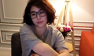 This frisky Bbw coed with huge juggs loves to masturbate with her glasses on