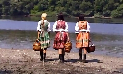 两个大boobed木乃伊与可爱的屁股在床上分享一个manstick